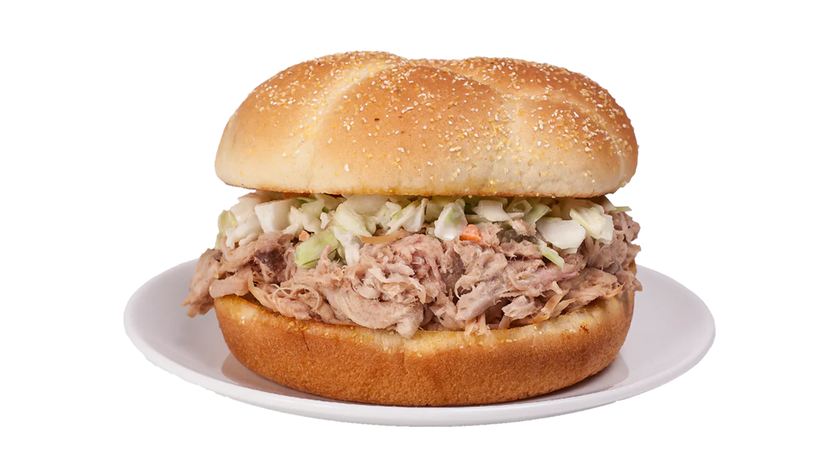 A vinegar based, smoked pulled pork, served with or without coleslaw on a toasted bun.