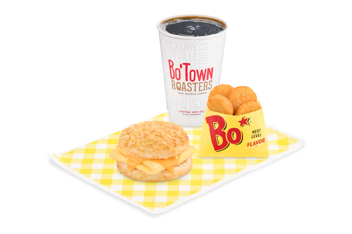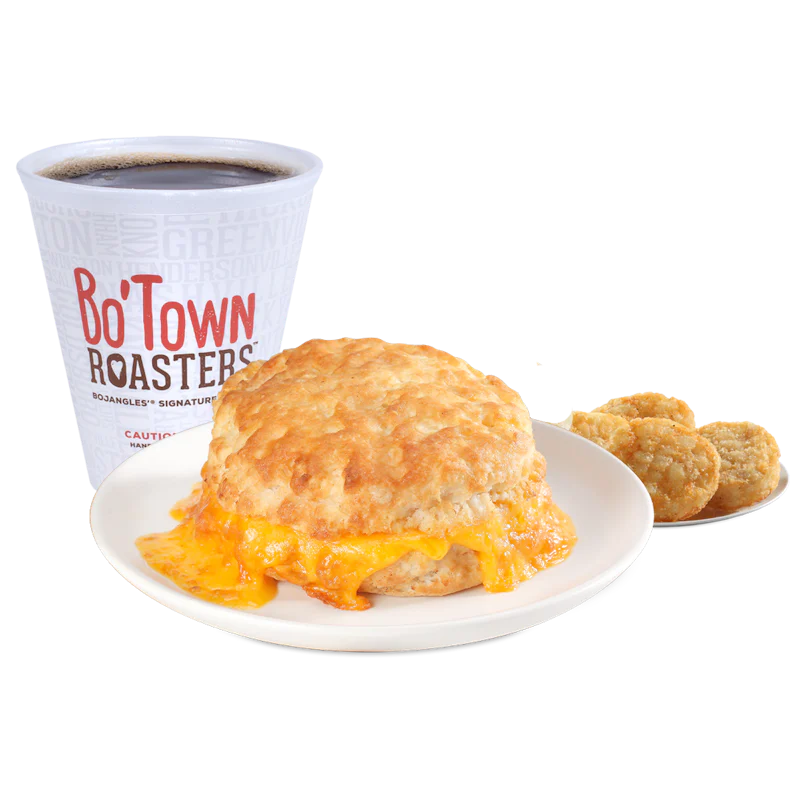 A cheddar cheese, made-from-scratch buttermilk biscuit, served with Bo-Tato Rounds®, coffee or medium drink.