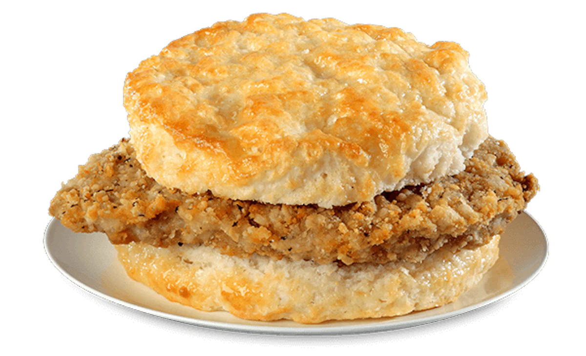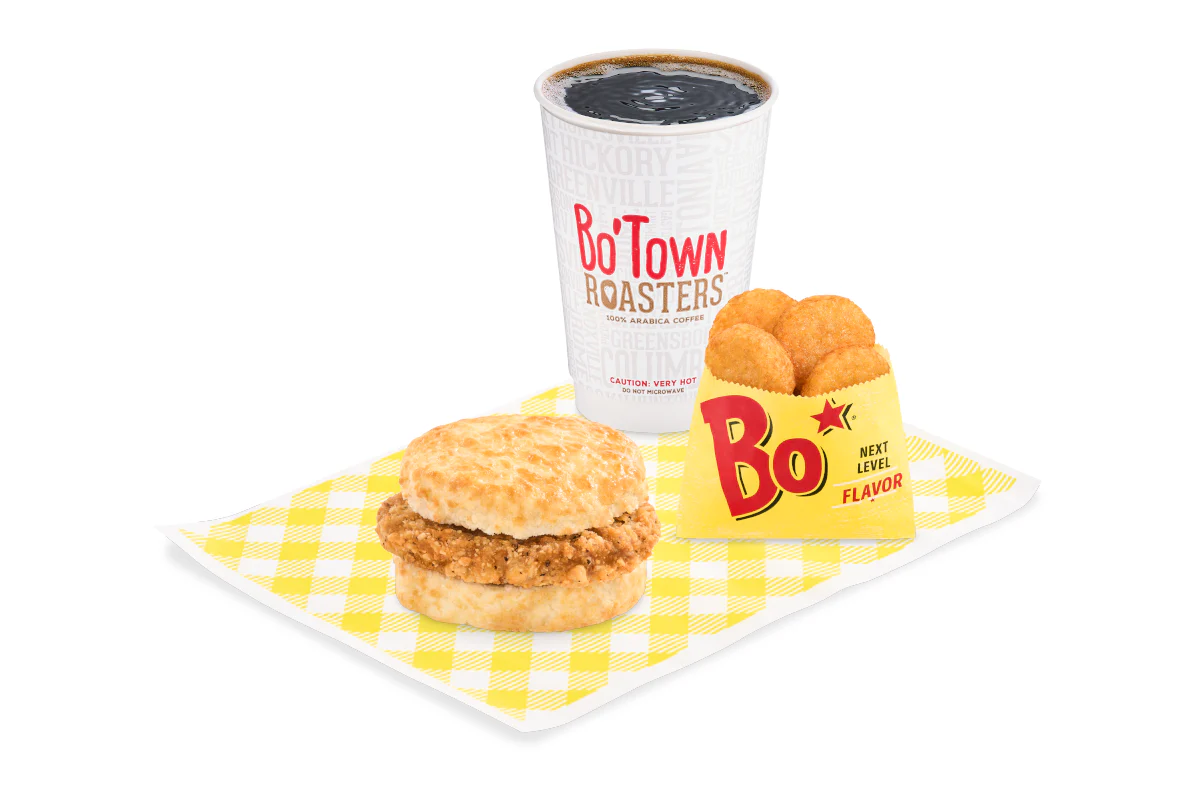 All white meat chicken breast marinated with a bold blend of seasonings and served on a made-from-scratch buttermilk biscuit, served with Bo-Tato Rounds®, coffee or medium drink.