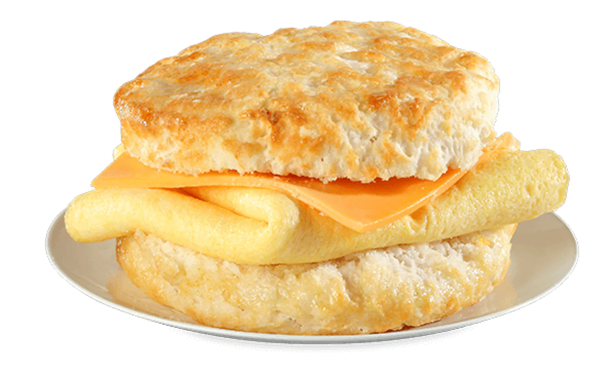 Eggs and American cheese on a made-from-scratch buttermilk biscuit, served with Bo-Tato Rounds®, coffee or medium drink.
