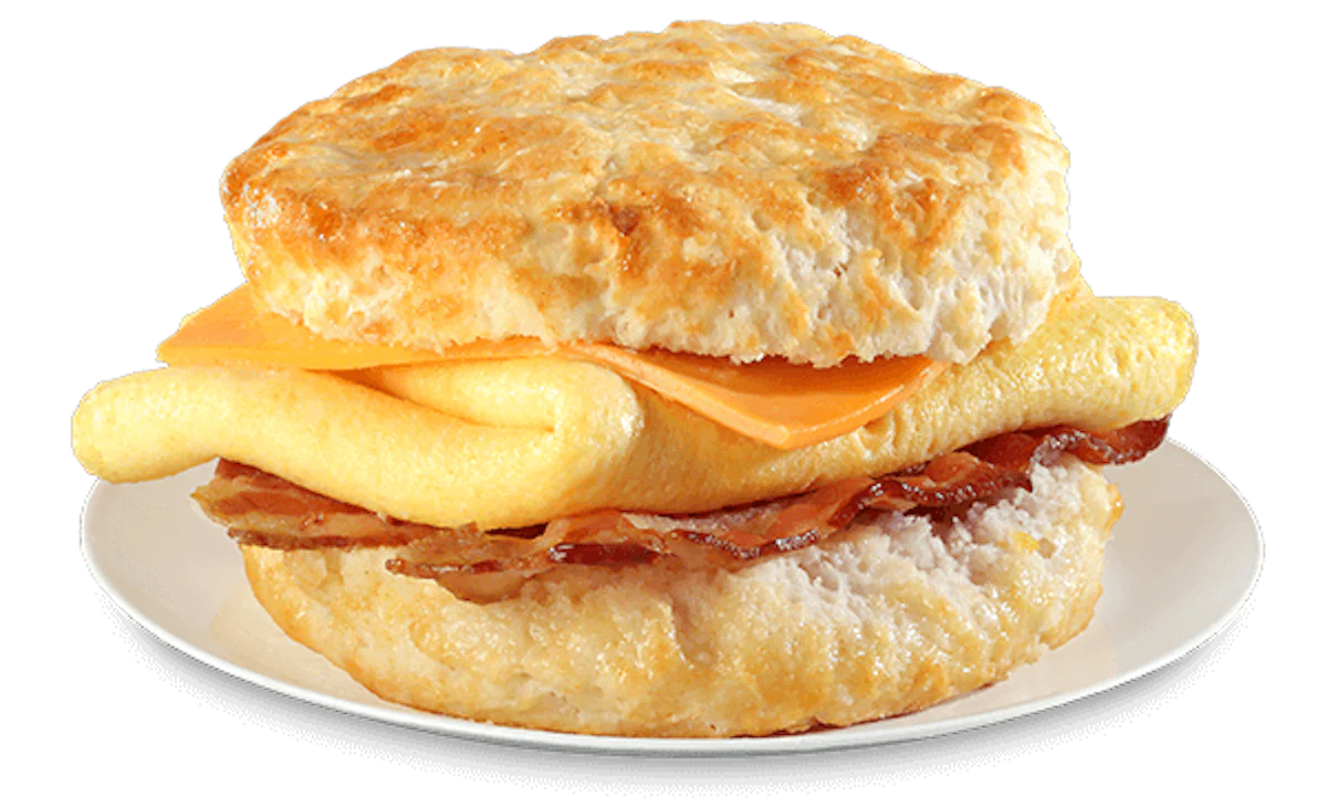 Eggs, hickory smoked bacon and American cheese on a made-from-scratch buttermilk biscuit.