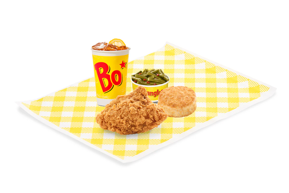 1 boldly seasoned leg, 1 boldly seasoned thigh, 1 home-style fixin’, a made-from-scratch buttermilk biscuit, and your choice of beverage.